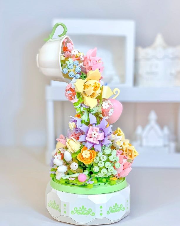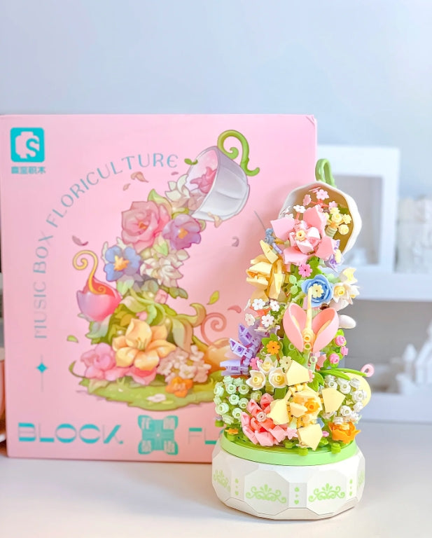 Flower tea light music box assemble building blocks