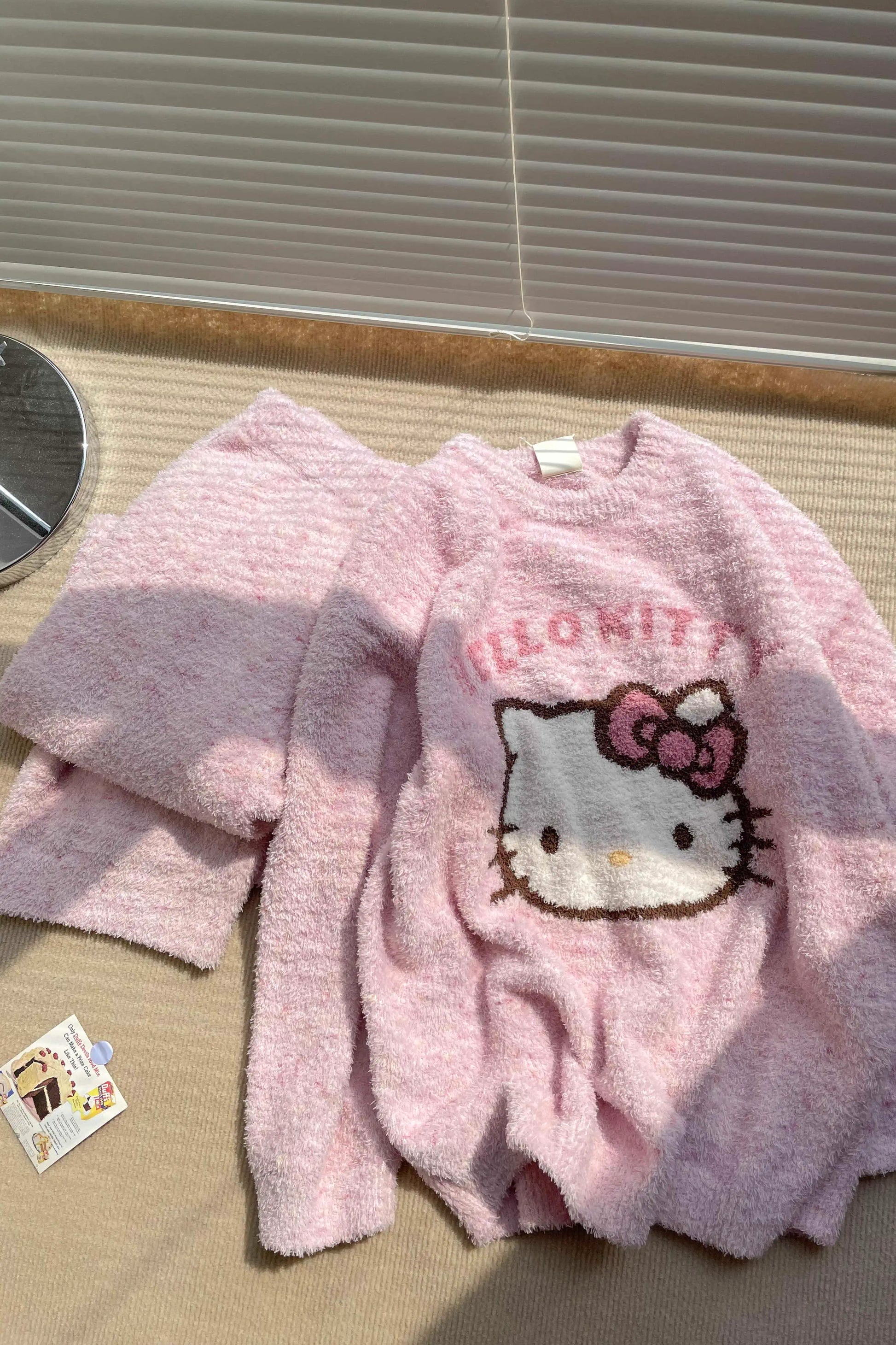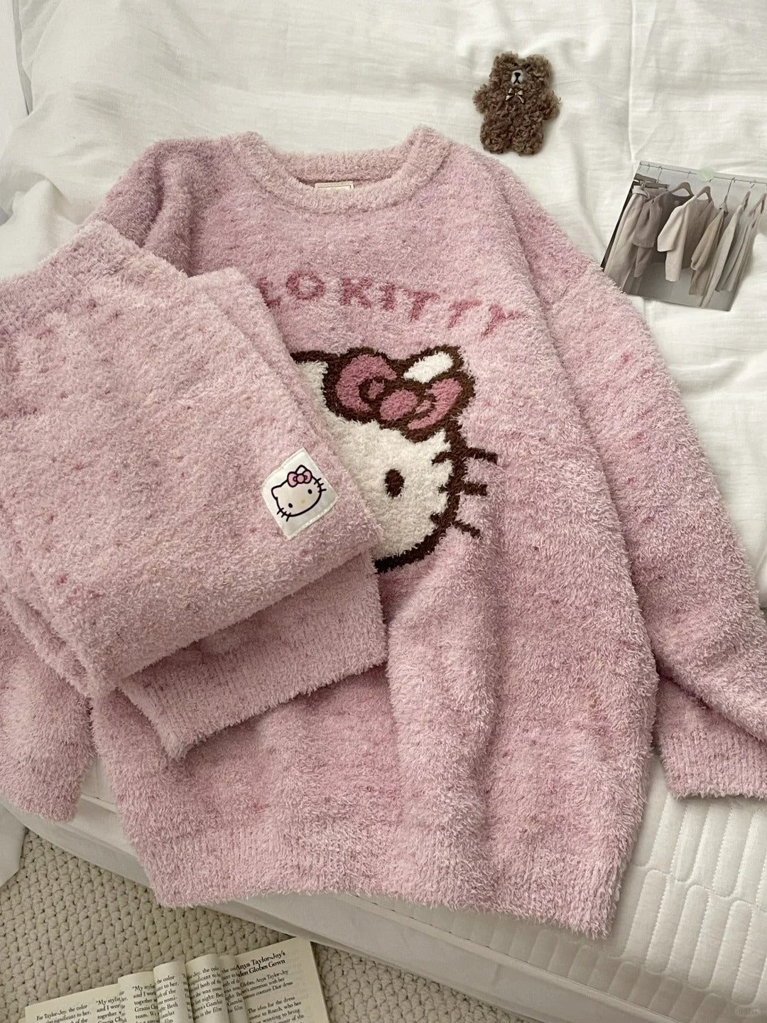 Hello Kitty fuzzy Long Sleeve Lounge wear Pajama Set